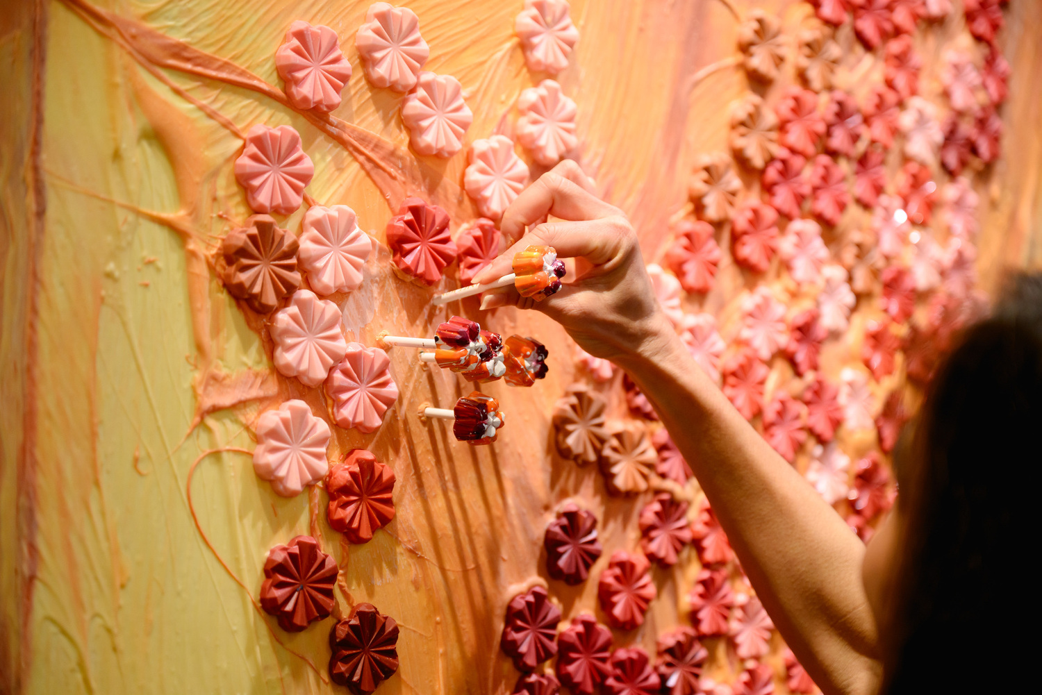 นิทรรศการยังเปิดโอกาสให้ผู้เข้าชมมีปฏิสัมพันธ์กับผลงานอย่างใกล้ชิด ผ่าน Chocolate Lollipop ซึ่งเป็นส่วนหนึ่งของงานศิลปะและสามารถลิ้มรสได้จริง โดยมีการออกแบบรสชาติที่แตกต่างกัน อาทิ Yuzu, Kaffir Lime, Earl Grey & Rose, Jasmine Milk Tea, Salted Caramel, Chilli และ Fig & Port Wine เพื่อเพิ่มมิติของประสบการณ์ให้ครอบคลุมทั้งการมองเห็น รสชาติ และอารมณ์ ทำให้การเสพงานศิลปะก้าวข้ามกรอบเดิมสู่ประสบการณ์แบบ Multi-sensory ผู้เข้าชมจึงไม่ได้เพียงชมผลงานศิลปะ หากยังได้ดื่มด่ำกับการเดินทางทางประสาทสัมผัสที่เชื่อมโยงอารมณ์และความทรงจำเข้าด้วยกัน สร้างความประทับใจที่ยังคงอยู่ แม้รสของช็อกโกแลตจะค่อย ๆ จางลงไปแล้วก็ตาม