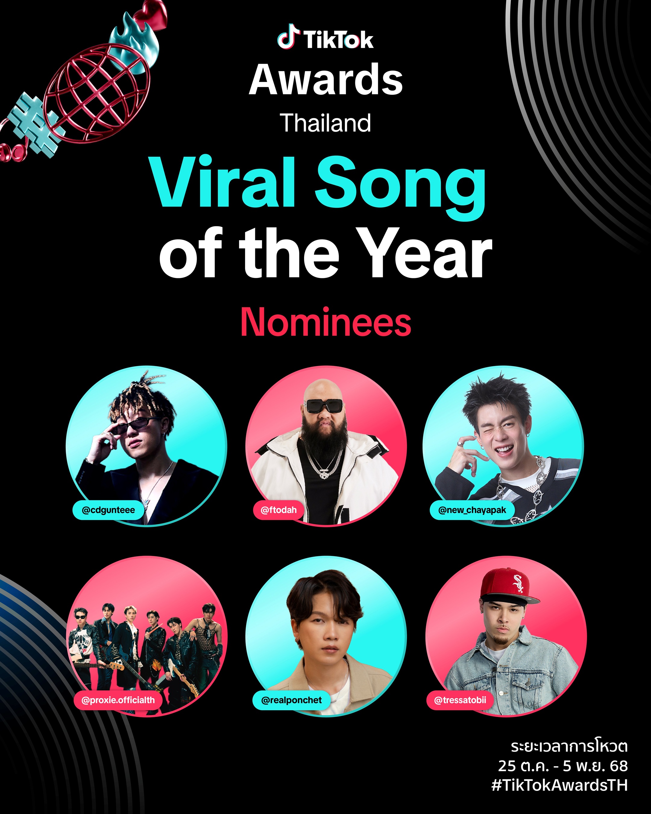 สำหรับ TikTok Awards 2025 ปีนี้ยังคงผลักดันพลังความสามารถของครีเอเตอร์รุ่นใหม่บนแพลตฟอร์มที่เติบโตทุกมิติ ผ่าน 2 หมวดหมู่รางวัลหลัก Judge’s Pick Awards 8 สาขารางวัล คัดสรรอย่างเข้มข้นโดยคณะกรรมการผู้ทรงคุณวุฒิระดับแนวหน้า ได้แก่ คุณ Angga Anugrah Putra ตัวแทนผู้บริหารจาก TikTok, คุณชลากรณ์ ปัญญาโฉม ผู้บริหารค่าย XOXO ENTERTAINMENT และ คุณยศสินี ณ นคร ผู้บริหารบริษัท Maker Y พร้อมพบกับครีเอเตอร์ ศิลปิน และนักแสดงระดับท็อปของวงการ ที่จะมาร่วมสร้างสีสันบนเวทีในฐานะผู้เชิญรางวัล อาทิ เจเจ กฤษณภูมิ พิบูลสงคราม, มิว ศุภศิษฏ์ จงชีวีวัฒน์, ยูโร ยศวรรธน์ ทะวาปี, สน ยุกต์ ส่งไพศาล, ออฟโรด กันตภณ จินดาทวีผล, ไดร์ม่อน ณรกร ณิชกุลธนโชติ, ผู้แทนการท่องเที่ยวแห่งประเทศไทย, บอนซ์ ณดล ล้ำประเสริฐ, แจ๊คกี้ จักริน วง TRINITY, เต้ ปิยะรัฐ กัลย์จาฤก, เหว่ง-เติ๊ด เทพลีลา, สยาโม สยาภา สิงห์ชู ผู้คว้ารางวัล TikTok Creator of the Year 2024 และ น้าติง ฮาร์ดคอร์