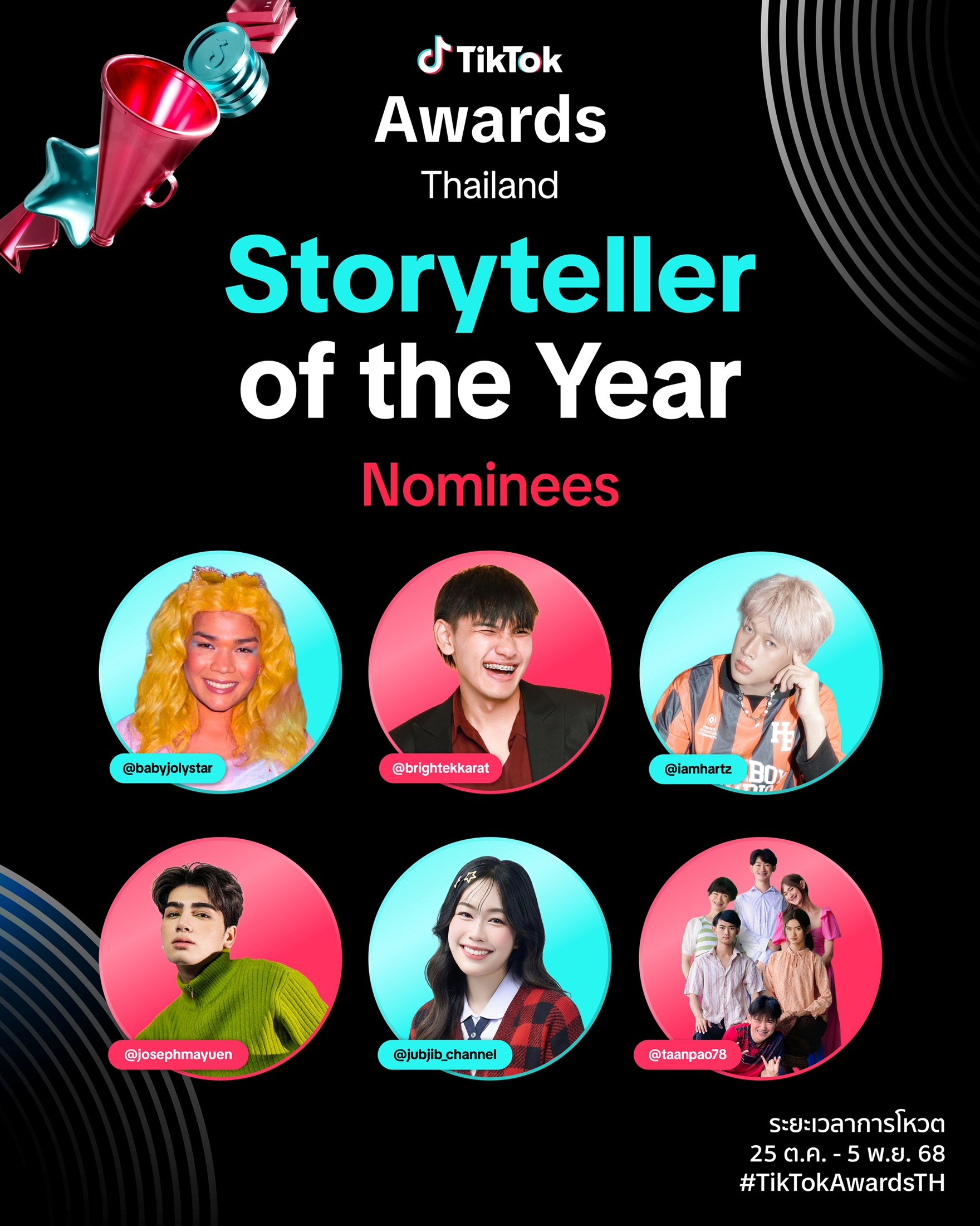 คัดเลือกจากครีเอเตอร์ที่สร้างสรรค์ผลงานโดดเด่นในหลากหลายอุตสาหกรรม รวมถึงรางวัล Social Impact of the Year ซึ่งสะท้อนบทบาทของครีเอเตอร์ในการสร้างแรงบันดาลใจและส่งพลังเชิงบวกต่อสังคม พร้อมเปิดตัวหมวดรางวัลใหม่ Entertainment Partner of the Year และ Sports Partner of the Year เพื่อมอบรางวัลให้แก่สื่อพันธมิตรชั้นนำที่ทำผลงานยอดเยี่ยมและสร้างอิมแพ็กที่โดดเด่นในอุตสาหกรรมของตนเอง