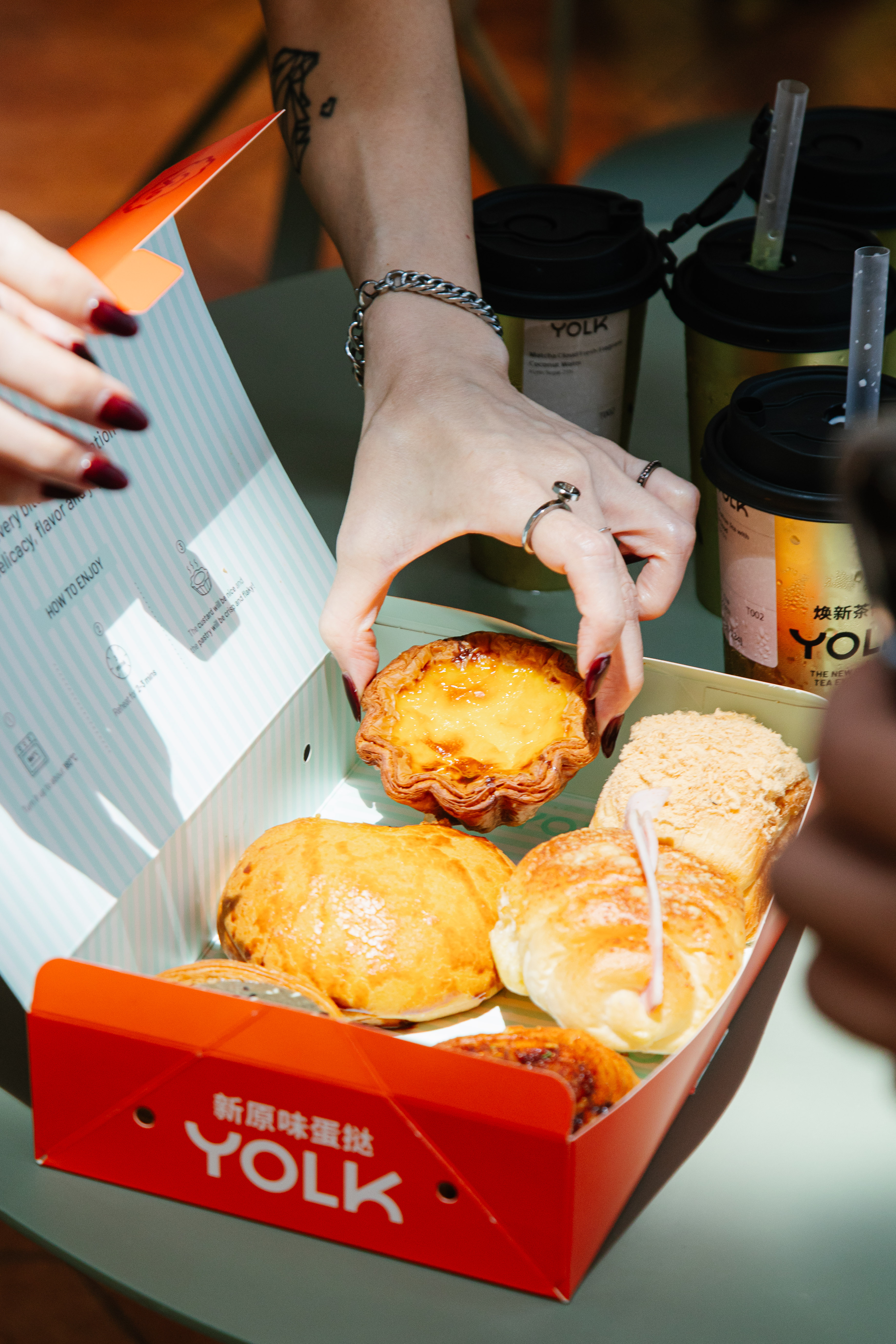 YOLK เปิดประสบการณ์เครื่องดื่มในรูปแบบ Oriental Wisdom Experience พร้อมเปิดตัว Oriental Tea Bar เป็นครั้งแรก โดยได้รับแรงบันดาลใจจากแนวคิดการดูแลตนเองตามภูมิปัญญาจีน ซึ่งมอง “การดื่มชา” เป็นส่วนหนึ่งของการดูแลสุขภาวะในชีวิตประจําวัน ทั้งในแง่ของรสชาติ และความสมดุล ของร่างกาย เครื่องดื่มชาทุกเมนูได้รับการสร้างสรรค์รสชาติใหม่ ๆ ตามเอกลักษณ์เฉพาะของ YOLK โดยยังคงแก่นของความเชี่ยวชาญด้านชาแบบตะวันออก (Oriental Wisdom) ที่สืบทอดมาอย่างลึกซึ้ง ผ่านการผสานชาและสมุนไพรตะวันออกอย่างลงตัว เมื่อดื่มคู่กับเบเกอรี่และทาร์ตไข่ซิกเนเจอร์รสชาติของชาและขนมจะช่วยเสริมกันอย่างเป็นธรรมชาติ ก่อให้เกิดประสบการณ์การรับประทานที่กลมกล่อม ละมุน และสมบูรณ์