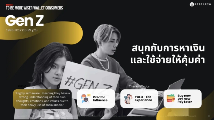 GenZ เติบโตมากับโลกออนไลน์เต็มตัว เป็นกลุ่มผู้บริโภคหลักที่มีความเชี่ยวชาญด้านโซเชียล และสามารถสื่อสารแสดงตัวตนผ่านแพลตฟอร์มดิจิทัลได้อย่างเป็นธรรมชาติ พวกเขาไม่ได้เป็นแค่วัยรุ่นติดมือถือ แต่เป็นผู้กำหนดเทรนด์ในตลาดปัจจุบัน