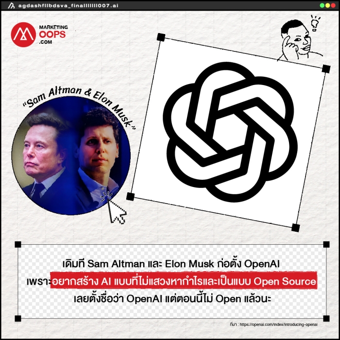 OpenAI : เดิมที Sam Altman และ Elon Musk ก่อตั้ง OpenAI เพราะอยากสร้าง AI แบบที่ไม่แสวงหากำไรและเป็นแบบ Open Source เลยตั้งชื่อว่า OpenAI แต่ตอนนี้ไม่ Open แล้วนะ