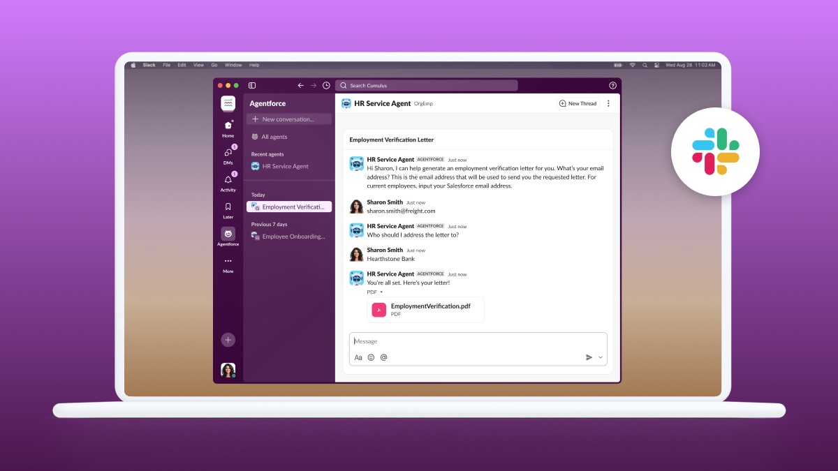 ระบบที่พนักงานสามารถถาม Agentforce ผ่าน Slack สำหรับคำถามเฉพาะบุคคลได้