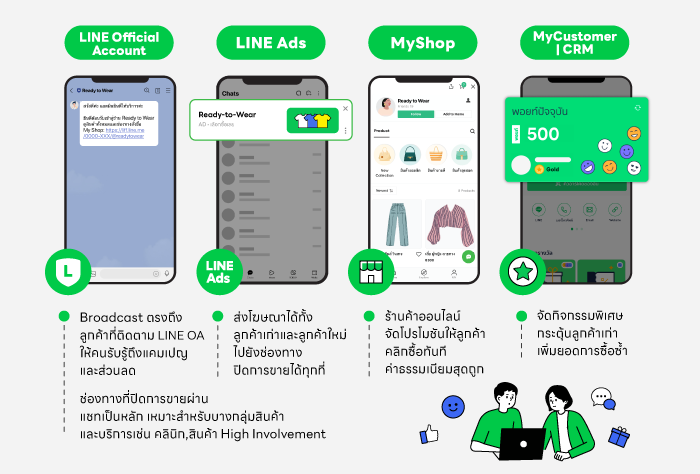จากโซลูชัน LINE ไม่ว่าจะเป็น LINE Ads, LINE Official Account, MyShop, MyCustomer l CRM ตอบโจทย์การตลาดแบบ Full-funnel ในการนำพาแบรนด์/สินค้าเข้าไปอยู่ตลอดทั้ง Customer Journey